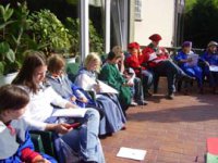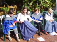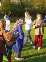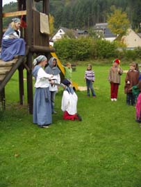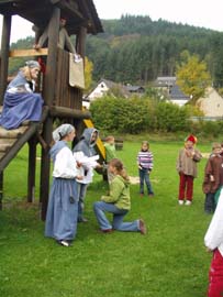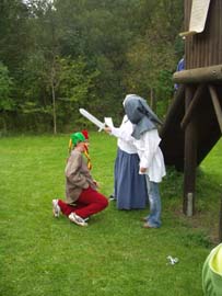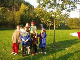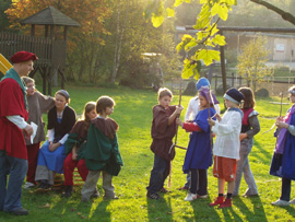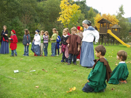 Im Schuljahr Rund um's Mittelalter, waren wir Burgfräuleins, Ritter, Knappen, Bauern, Jäger, Mönche, Minnesänger